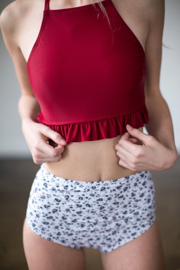Bordo Yüksek Bel Tankini Takım