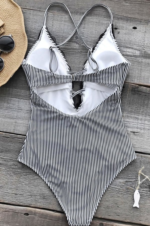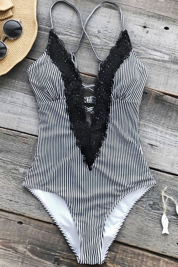 Dantel İşlemeli Siyah Beyaz Mayo
