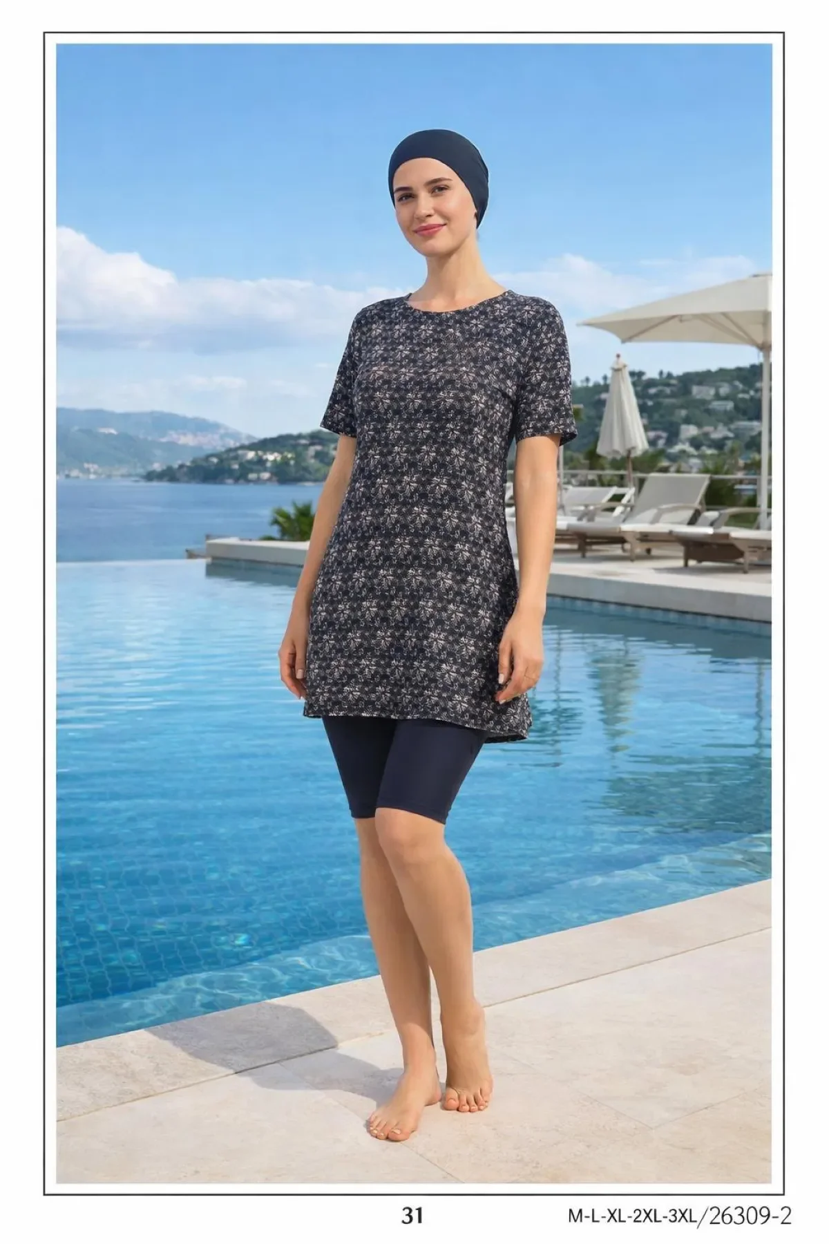 Boost your boutique's revenue with this season's top-trending semi-covered modest swimwear. Designed to meet the high demand for modern yet conservative beachwear, this stylish set guarantees rapid sell-through and excellent profit margins for retailers.