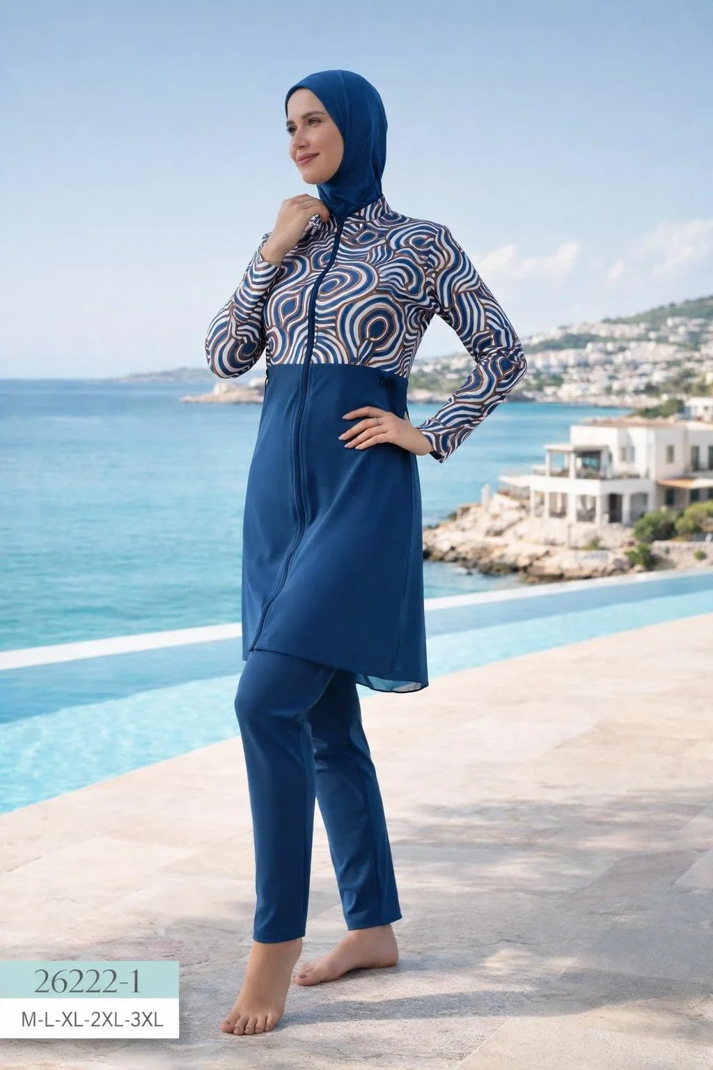 Şık Desenli Toptan Tam Kapalı Mayo: Butik ve e-ticaret satıcıları için ideal, şık tasarımı ve kaliteli işçiliği ile öne çıkan tesettür mayo.
