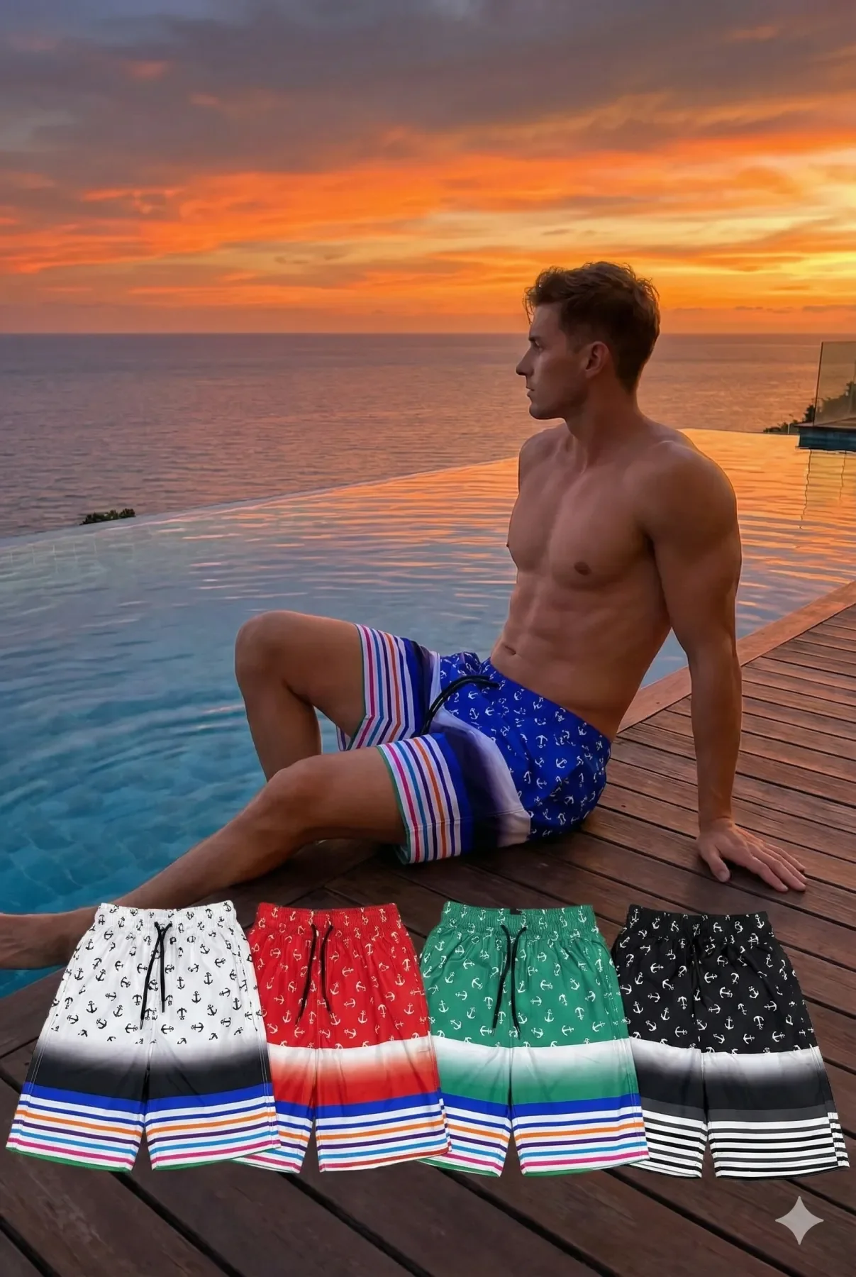 toptan erkek deniz şortu, çapa desenli şort, toptan mayo, erkek plaj giyim imalat, şeritli erkek şort, hızlı kuruyan deniz şortu, toptanmayo, erkek mayo modelleri, yazlık erkek giyim toptan