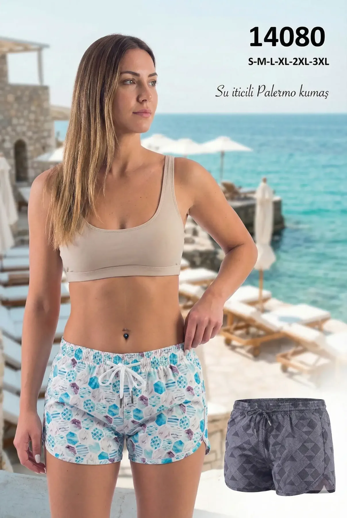 toptan kadın deniz şortu geometrik desenli 14080